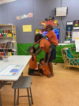 We were able to celebrate NAIDOC this year in style! We had great fun doing Tennis Ball and Tennis Racket (a big version of Egg and Spoon!) races, Potato sack races, forwards and backward running races and so many more! We got our faces painted in traditional colours by Miss Sue, Mr Wilder and Miss Kim and watched some television shows in Walmajarri!